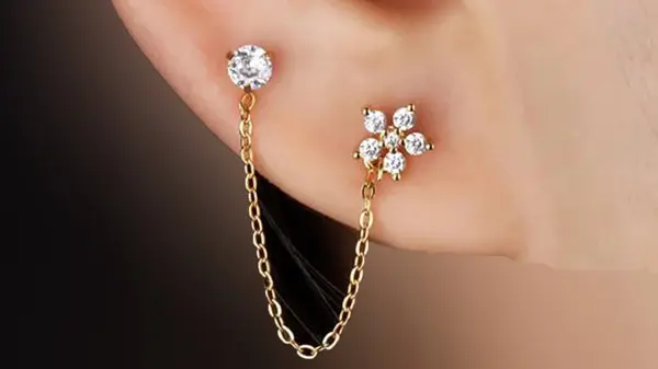 در این نوع، زنجیرهها با گوشوارهها به صورت مستقیم متصل هستند. این سبک اغلب با زیباییهای مختلفی از جمله الماس، گوشتیها یا سنگهای قیمتی تزئین شدهاند که ظاهر آنها را بیشتر تزئین میکند.