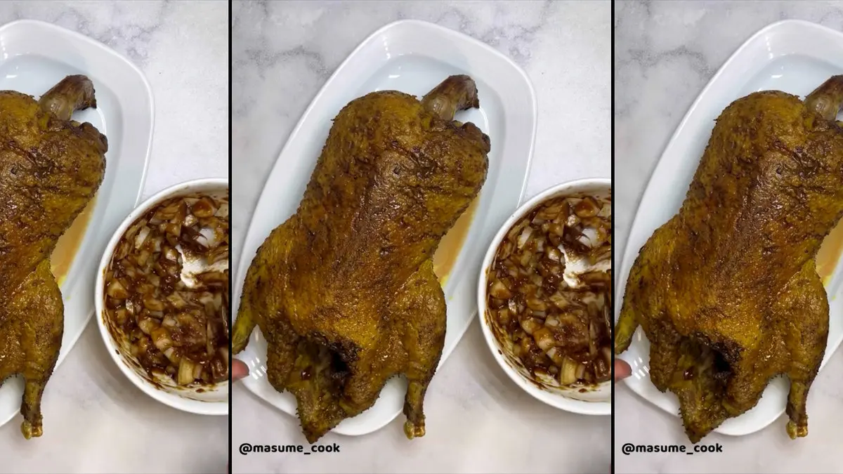 اردک رو با نمک و فلفل و زردچوبه مزه دار میکنیم. تو شکمش هم فلفل سیاه میزنیم و تو روغن سرخ میکنیم، اردک روغن زیادی پس میده؛ برای همین خیلی روغن نریزید، بعد از اینکه اردک رو خوب سرخ کردین روغنی که باهاش اردک سرخ شد رو بریزید دور.