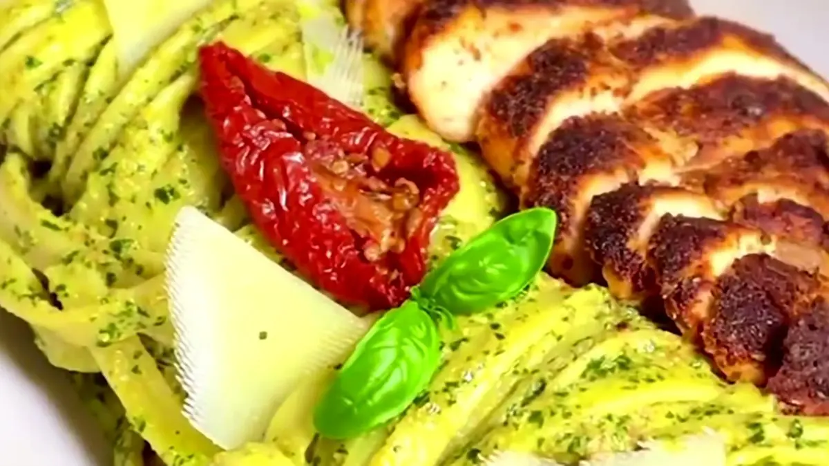 طرز تهیه پاستا با سس پستو همراه با سینه مرغ + فیلم