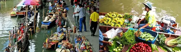 البته در بانکوک، مفهوم بازار شناور، کمی وسیع تر از بقیه ی شهرهای تایلند است و در واقع جایی بیشتر از یک بازار کنار رودخانه است. به خاطر باریک بودن کانال، فقط تعداد کمی قایق می توانند روی آب باشند و برای مشتریانی که روی صندلی های کوچک نشسته اند، آشپزی کنند. همیشه یکی از جذابیت های بازدید از این بازارها، غذا خوردن است، نشستن روی صندلی های کوچک چوبی ای که کمتر از ۱۰ سانتیمتر ارتفاع دارد و سفارش دادن غذا در یک قایق کوچک چوبی، یک تجربه ی سرگرم کننده و عجیب است!