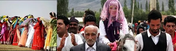 در روز عروسی تمام فامیل و مردمان مرتبط با طایفه خانواده داماد با یکدیگر و با در دست داشتن هدایا به سوی خانه عروس میروند. بعد از صرف شام و دیگر مراحل ازدواج به هنگام بازگشت برادر داماد به عنوان هدیه یک شاخه نبات به عروس میدهد و بعد از آن عروس را سوار بر اسب مادیان میکنند و بر سر عروس یک تکه پارچه از جنس ابریشم میگذارند. قبل از به راه افتادن اسب، پسر خردسالی سوار بر اسب میکنند. این کار با این نیت انجام میشود که اولین فرزند عروس پسر باشد!