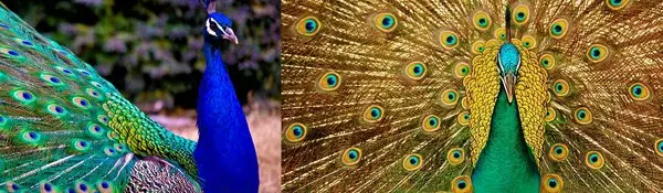 طاووس پرنده بسیار زیبایی است که در کل به دو گونه تقسیم میشود: طاووس هندی و طاووس سبز. طاووس پرندهای است که تمایل زیادی به نشان دادن خود و خودنمایی دارد. در گونه طاووس هندی، جنس نر سر و گردنی آبی دارد و پرهایش بسیار رنگارنگ و زیبا است. اما از سویی دیگر جنس ماده بسیار یکنواختتر است. طاووس هندی ماده قهوهای یا خاکی رنگ است و دلیل این مسئله این است که جنس ماده طاووس هندی برای حفاظت از جوجههای خود نیاز دارد که با محیط یکی شود و استتار بیشتری داشته باشد. برخلاف طاووس هندی، رنگبندی جنس نر و ماده در طاووس سبز بسیار به یکدیگر نزدیکتر است. البته این نکته هم مهم است که طاووس سبز نر دم بلندتری دارد و رنگ پرهایش خیره کنندهتر است. طاووس سبز بر روی سر و گردن خود پرهای سبز رنگ دارد. هر دو گونه طاووس هندی و سبز، دور چشمان خود یک تکه پوست دارند و هر دو گونه تاج زیبایی بر روی سر خود دارند.
