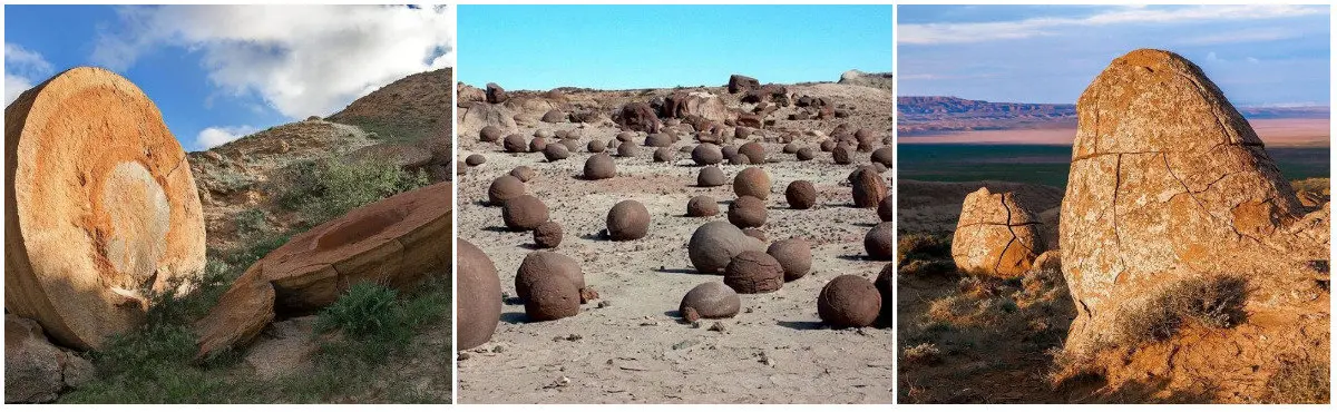 همانطور که اشاره کردیم سنگ های توپی موجود در دره ی توپ های قزاقستان اندازه های مختلفی دارند. به راستی هر یک از این سنگ ها به تنهایی جاذبه ای دیدنی هستند؛ برخی از آن ها به اندازه ی یک تخم مرغ کوچک اند و بعضی دیگر مانند یک اتومبیل غول آسا بزرگ هستند. چند نمونه از این صخره های جذاب را با هم نگاه می کنیم.