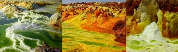فرورفتگی داناکیل (Danakil Depression ) یکی از گرم ترین و غیرقابل سکونت ترین نقاط زمین است. اما در عوض تصویری سورئال و منحصر به فرد دارد به طوری که اصلا به نظر نمی رسد قسمتی از سیاره زمین باشد و گویا از سیاره ای دیگر آمده است. در گوشه و کنار جهان شاید فقط چند نقطه با چنین شرایطی بیابید اما سرسخت ترین و زیباترین آنها را می توان این فرورفتگی در اتیوپی دانست. رسیدن به این منطقه کار آسانی نیست و باید مراقب گرمای شدید آن بود چرا که در بهترین حالت شاید با گرمای 50 درجه سانتیگراد روبه رو شوید ، شدت این گرما برخی مواقع به قدری زیاد است که آن را جهنم روی زمین می خوانند.