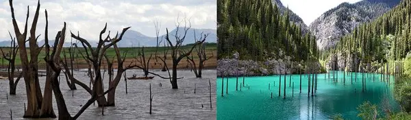 درختان مرده ی میریاد از زیر آب های دریاچه ی ولتا در غنا پدیدارند، این دریاچه وسیع ترین سطح آب انبار را در سرتاسر دنیا دارد. دریاچه ی ولتا از طریق یک سد هیدروالکتریک که انرژی مورد نیاز تمام کشور را تامین می کند، ساخته شده است. این پروژهه در سال ۱۹۶۵ تکمیل شد و باعث سکونت ۷۸۰۰۰ نفر در حاشیه ی آن شد. این موضوع باعث شد تا درختان منطقه تمام به زیر آب بروند و یکی از زیباترین جنگل های زیر آب جهان را تشکیل بدهند.برای ورود به کانال تلگرام ما کلیک کنید.