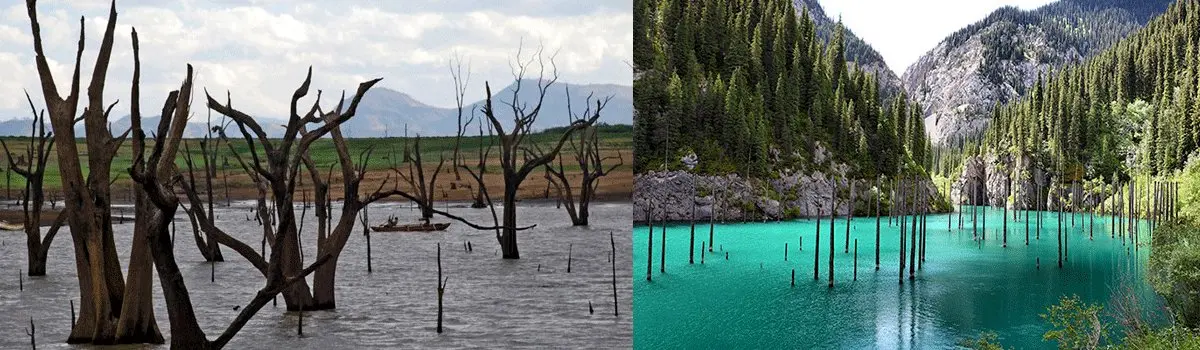 تنه درختانی که در آب های این منطقه در سریلانکا است، یادآور درختان سوخته ای است که در یکی از بیابان های آفریقا می روند. در گذشته در این منطقه سدی وجود داشت که بعد از اینکه شکسته شد، آب پشت سد در این جنگل جاری شد و سرتاسر آن را پوشاند.