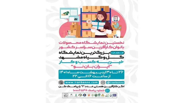 رکنا: نخستین و بزرگترین نمایشگاه فروش محصولات بانوان کارآفرین از سراسر ایران با عنوان "شهربانو" از تاریخ ۲۶ الی ۳۰ اردیبهشت ماه همزمان با نمایشگاه گل و گیاه، از ساعت ۱۶ الی ۲۲ در محل نمایشگاه بین المللی شهر مشهد برگزار می شود.