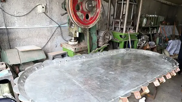 به گفته این صنعتگر زنجانی 7 سفارش از این سینی در سه ابعاد مختلف 132 سانتیمتر در سه متر، 112 سانتیمتر در 262 سانتیمتر و 100 سانتیمتر در 242 سانتیمتر ساخته خواهد شد. وزن این سینی بزرگ بدون دسته 285 کیلوگرم و با دسته 335 کیلوگرم است.برای ورود به کانال تلگرام ما کلیک کنید.