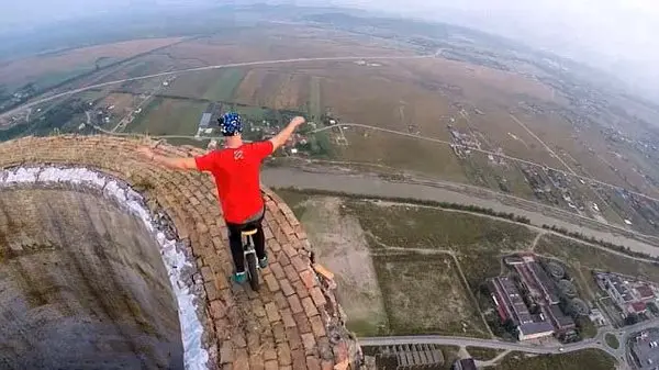 مرد رومانیایی بی باک با یک چرخه روی دودکش صنعتی در شهر ترگوژی در رومانی موجب حیرت همراه با وحشت کاربران شده است. وی در سطحی با عرض کم و در یک قدمی مرگ دست به این شیرین کاری زده است. وی در طول مسیر جسورانه از گره های فلزی نیز با پرش عبور می کند. یک لحظه قصور و غفلت این مرد منجر به مرگ وی می شد، اما وی با اعتماد به نفس بسیار حرکات نمایشی خود را انجام می داده است. سپس وی به لبه دودکش نزدیک می شود و از بالا مناظر پایین را مشاهده می کند. در نهایت وی تصمیم می گیرد از داربست میان دودکش بالا رود و برای انجام این کار از دستان برهنه خود کمک می گیرد و به گودال ژرف زیر نیز نگاه می کند. سپس از یک دست اش آویزان می شود و از این جا به بعد تصاویر تیره و تار می شود. Flaviu شعبده باز حرفه ای محسوب می شود که تابحال حرکات نمایشی زیادی را در سرزمین مادری اش انجام داده است. برای ورود به کانال تلگرام ما کلیک کنید.