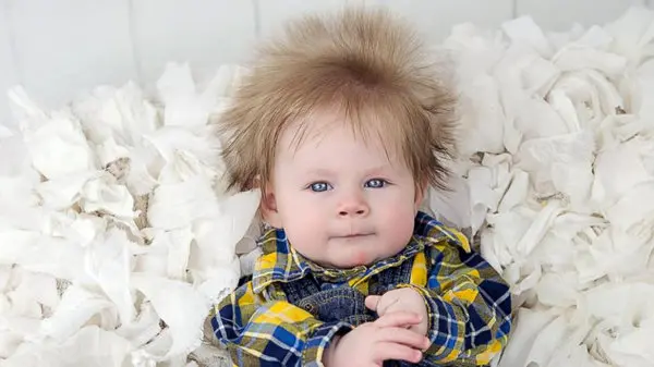 این کودک را برق نگرفته است! / موهای عجیب نوزاد 5 ماهه که سوژه شبکه های اجتماعی شد +تصاویر