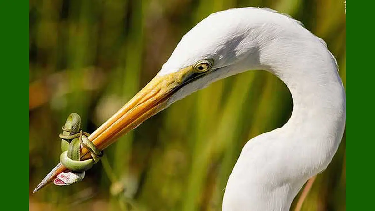 رکنا: حواصیل می خواست مار را ببلعد اما خزنده با پیچیدن به دور منقار پرنده مانع از این شد که طعمه ای آسان باشد.
