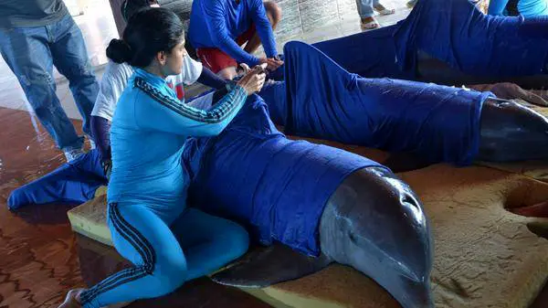 ماریا لوئیزا هرناندز وگا (María Luisa Hernández Vega) سرپرست این عملیات نجات در رابطه با جزئیات فعالیت های انجام شده اعلام کرد: « در این عملیات یک دامپزشک و دو تمرین دهنده و مربی دلفین ها در کنار آن ها حضور داشته و عملیات مورد نظر به کمک دو هلیکوپتر انجام شد.»