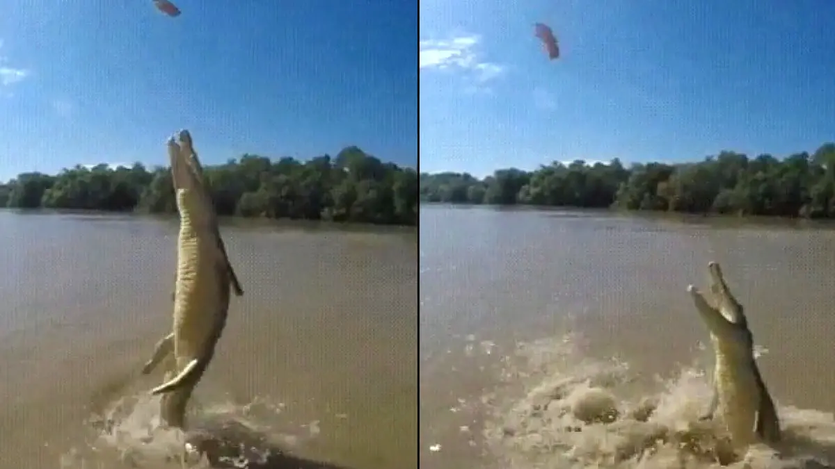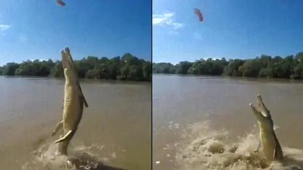 رکنا: نمایی از پرش کروکدیل که شبیه به پرواز کردن است.