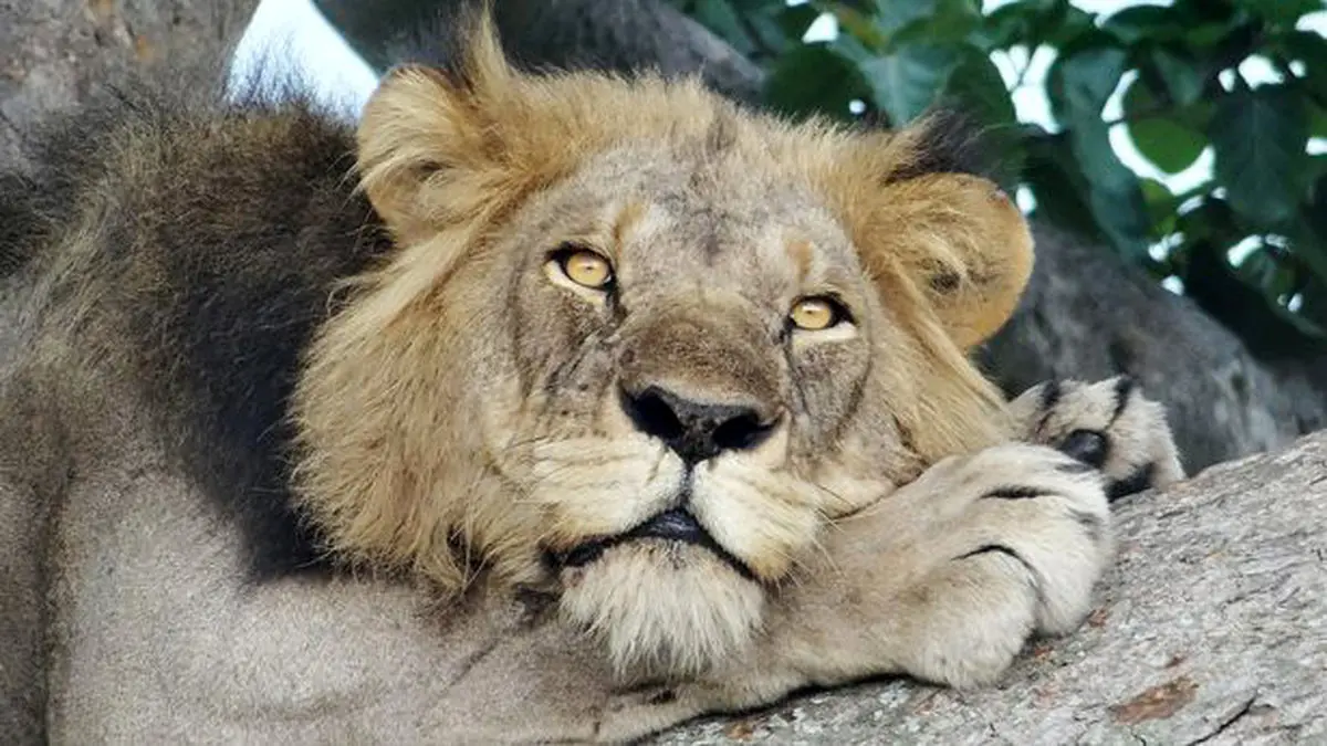 رکنا: تصاویر منتشر شده از دو شیر کوهنورد نر بالغ که توانسته اند از تنه درختی برای چرت نیمروزی بالا روند سوژه عکاس حیات وحش شد.