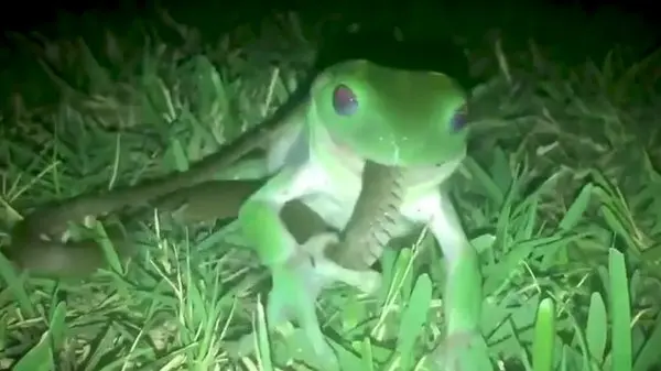 برخی پرندگان و پستانداران و حتی مارهای دیگر گاهاً مارها را شکار می کنند اما شاید کسی تاکنون نشنیده که مار توسط وزغ شکار شود. با این وجود با تماشای ویدیویی که در ادامه می بینید می بینید که طبیعت همیشه چیزی برای غافلگیر کردن شما دارد. این گونه وزغ سبز استرالیایی در همه نقاط این کشور و گینه نو یافت شده و نوع ماده آن تا ۱۰ سانتیمتر نیز طول دارند اما گونه نر کوچکتر بوده و طول کمتری دارند.
