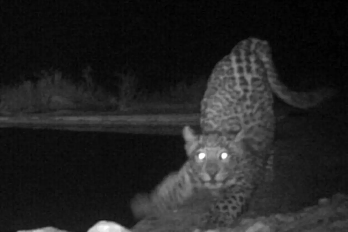 رکنا:تصویر یک پلنگ ایرانی توسط دوربین های تله ای در بندر لنگه به ثبت رسید.این پلنگ ایرانی از گونه نادر در حال انقراض است.