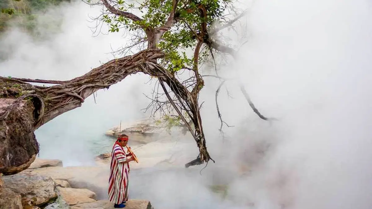 رودخانه ی جوشان با لایه هایی از افسانه، معنویت و عرفان پوشیده شده و به همین دلیل در میان جامعه ی محلی مکانی مقدس تلقی می شود.محدوده ی این رودخانه زیستگاه دو جامعه ی بومی و شفادهنده ی آمازون به نام های Santuario Huistin و Mayantuyacu می باشد که مدت های مدید اینجا را مکانی مقدس و محل تجمع نیروهای روحانی معرفی کرده اند به طوریکه تنها قدرتمندترین شفادهنده ها برای «ارتباط برقرار کردن با ارواح» از آنها بازدید می کنند تا بتوانند در مورد قدرت های شفابخش رازآلود و مراسم پیشینیان خود اطلاعات بیشتری کسب کنند.
