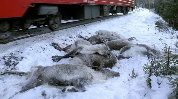 یکی از گلهداران گوزن شمالی به آسوشیتدپرس گفته است که از پنج شنبه هفته گذشته در مجموع ۱۰۶ راس گوزن شمالی به دلیل برخورد با قطارهای باربری تلف شدهاند که این آمار بیسابقه بوده است.