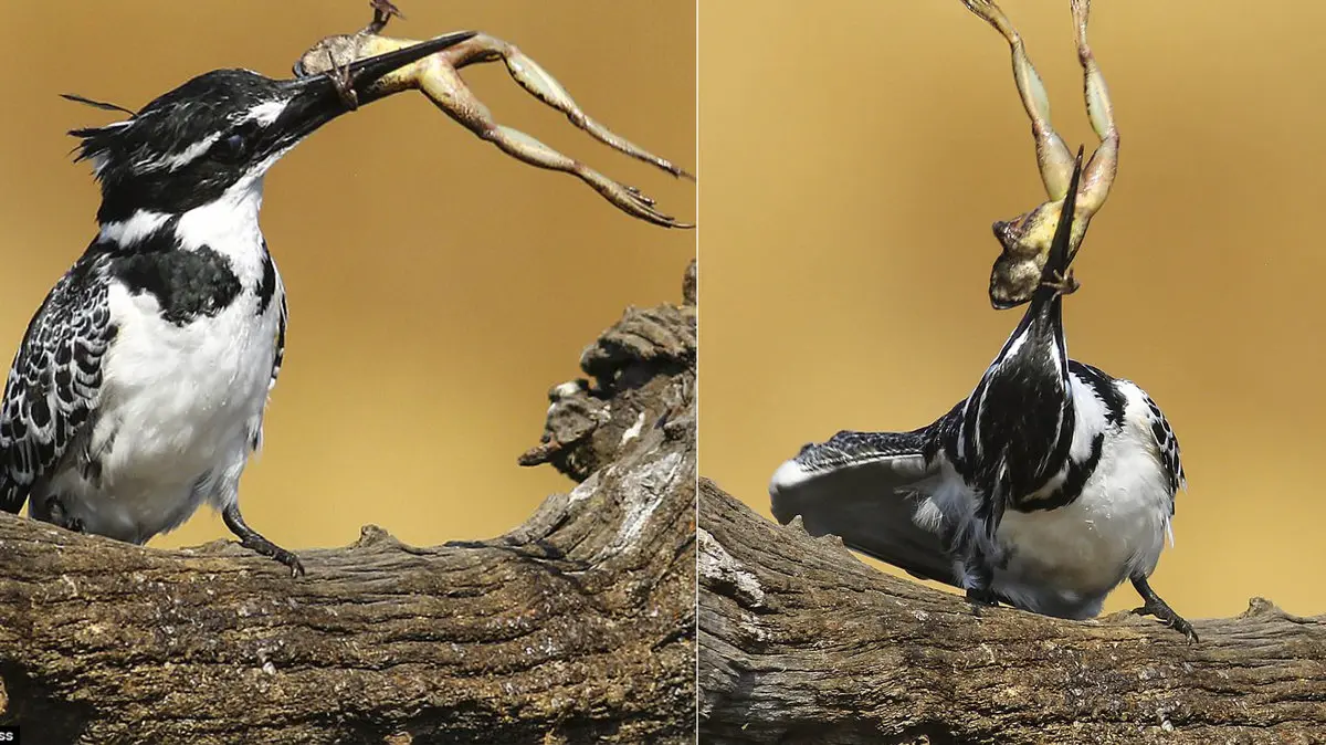 رکنا: معلم مدرسه ای در شهرژوهانسبورگ آفریقای جنوبی تصاویر دیدنی از لحظه بلعیدن یک قورباغه توسط پرنده کوچکی به نام ماهی خورک گرفته است.