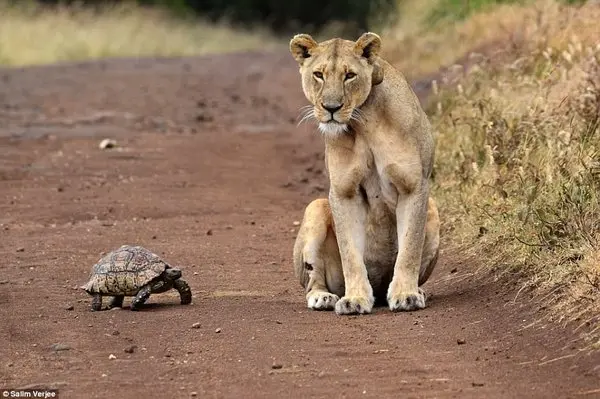 دوستی دیدنی شیر و لاک پشت+تصاویر