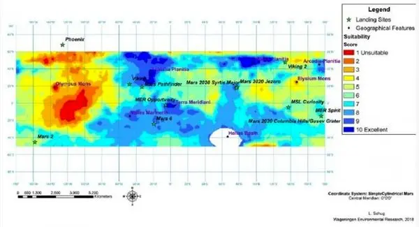 به نقل از تک تایمز، محققان "دانشگاه و مرکز تحقیقاتی واخِنینگِن" (Wageningen University and Research) در هلند، برای تعیین بهترین مکان استقرار انسان در سیاره مریخ در آینده، یک نقشه سه بعدی را طراحی کرده اند که مکان های مختلف ایده آل برای زندگی در مریخ را نشان می دهد.