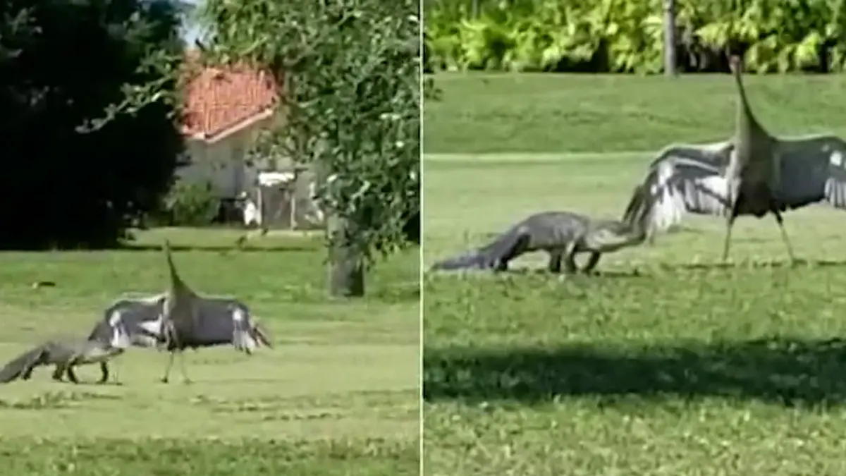 رکنا: دفاع عجیب یک پرنده درنا از جوجه هایش در برابر تمساح گرسنه میلیون ها کاربر اینترنتی را شوکه کرد.