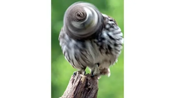 مایلز هربرت عکاس انگلیسی موفق شد عکسهای فوقالعادهای را از چرخش عجیب و سریع یک جغد که همانند چرخاندن دایره ای از آتش است ثبت کند. مایلز در مورد این تصاویر توضیح داد: به نظر می رسید که جغد در حال تمرین برای قویتر کردن استخوانهای گردنش بود و به شدت سرش را به تمامی جهات می چرخاند.
