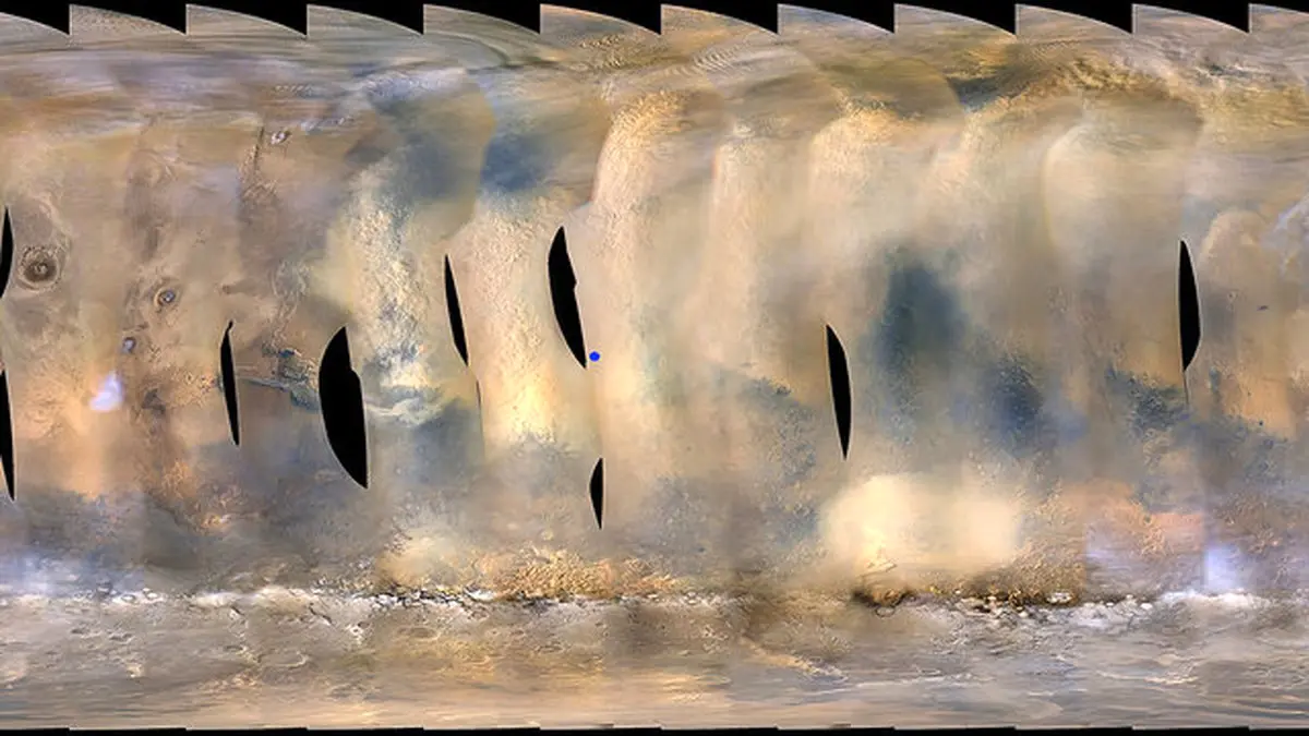 به گفته ناسا، روز جمعه(8 ژوئن) طوفان بیش از 18 میلیون کیلومتر مربع از سطح مریخ را پوشش داده بود. این منطقه بزرگتر از کل آمریکای شمالی روی زمین است.