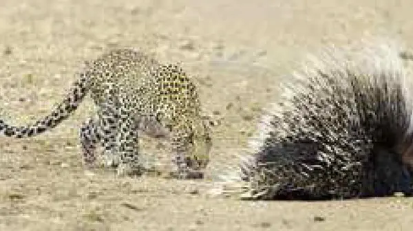 فرار عجیب پلنگ گرسنه از دست جوجه تیغی + عکس