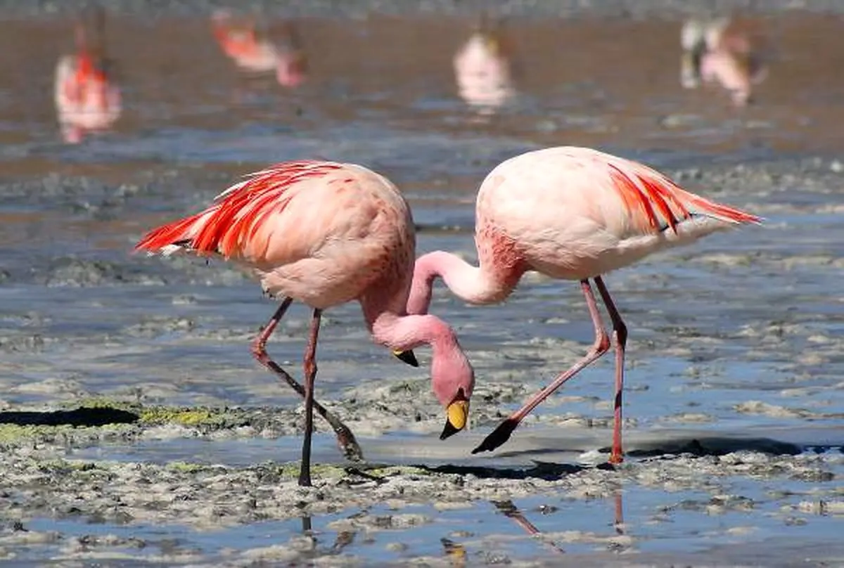 فلامینگوها هنگام غذا خوردن نفس شان را نگه می دارند. وقتی که فلامینگوها می خواهند استراحت کنند روی یک پا می ایستند.