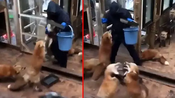 حرکات عجیب روباه های گرسنه پس از دیدن سطل غذا + فیلم