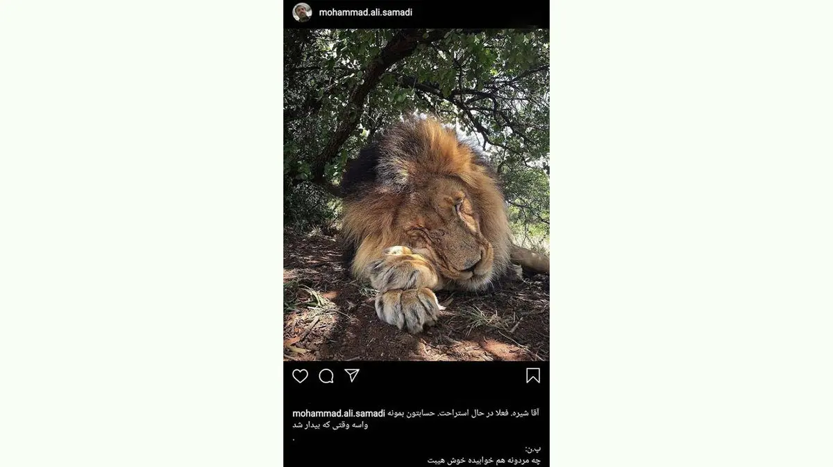 به گزارش رکنا ، محمد علی صمدی نویسنده و فعال فرهنگی با انتشار تصویری از لحظه استراحت یک شیر در صفحه اینستاگرام خود نوشت: