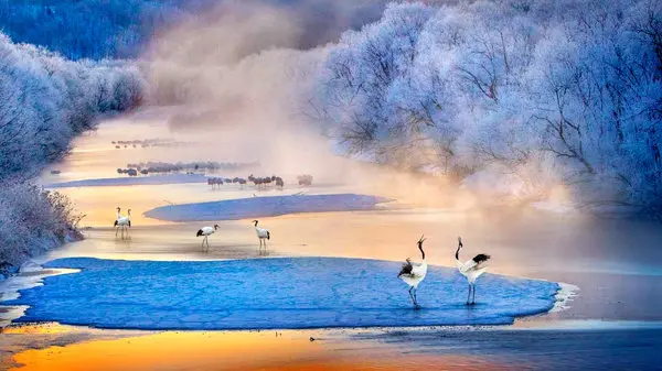 رکنا : رقصی از درناها را در این عکس ببینید.