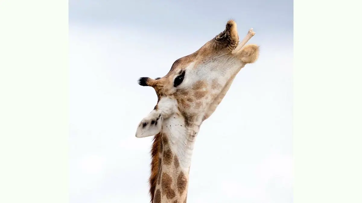 رکنا : یک زرافه که مشغول جویدن استخوان بود شکار دوربین شد.