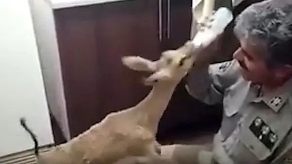 این محیط بان بره آهو را سیراب کرد + فیلم