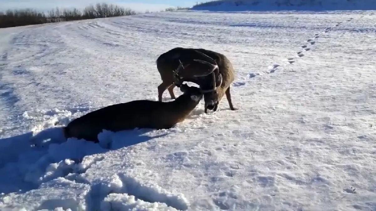 دعوای جدی بین گوزن ها + فیلم