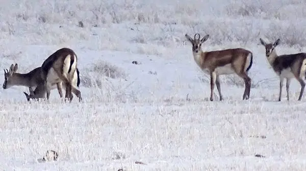 غذا رساندن محیط بانان به آهوان در زنجان + فیلم