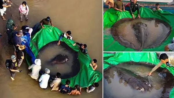 این لقمه ماهی روز ۱۳ ژوئن توسط یک ماهیگیر محلی در استان «استانگ ترنگ» در شمال شرقی کامبوج به دام افتاد. ماهیگیر بلافاصله موضوع را به گروه تحقیقاتی که وظیفه حفاظت از این آبراه را بر عهده دارد، اطلاع داد. پژوهشگران پس از مشاهده این ماهی بزرگ در این منطقه و در آبهای شیرین شگفتزده و در عین حال خوشحال شدند.