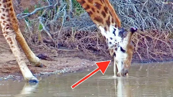 فیلمی از زرافهای که به دلیل سوراخی گلو نمیتواند آب بنوشد را مشاهده کنید.