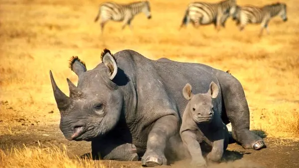 استراحت بچه کرگدن در کنار مادرش +عکس