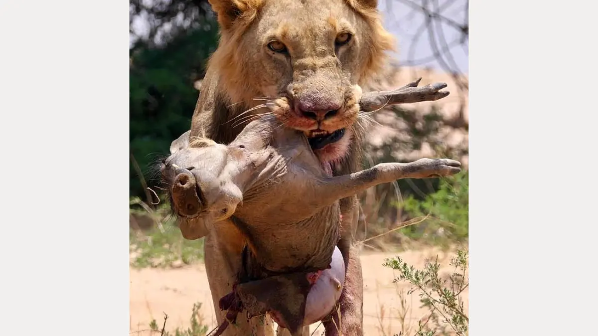 رکنا: لحظه شکار گراز توسط شیر نر را مشاهده کنید.