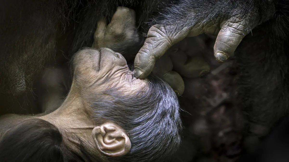 رکنا: نوازش یک گوریل تازه متولد شده را در این عمس ببینید.