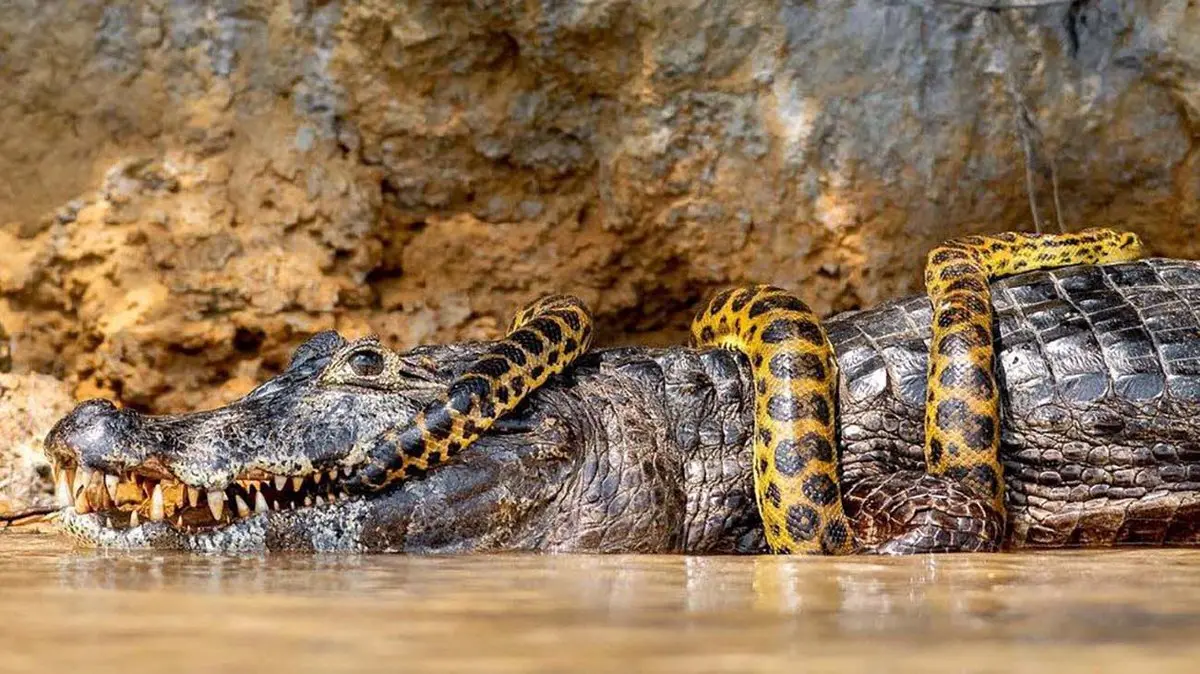 رکنا: یک مار بوآ در دهان تمساح گرسنه مشاهده شد.