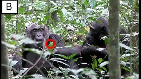محققان فیلمی از یک شامپانزه بالغ وحشی در اوگاندا به نام فیونا گرفته اند که نشان میدهد مادرش را تشویق میکند تا به برگی که به تازگی از زمین پیدا کرده، نگاه کند.