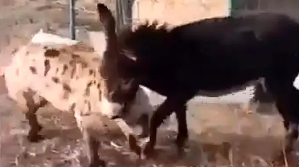 ببینید این الاغ چه بلایی سر کفتار آورد؟ + فیلم