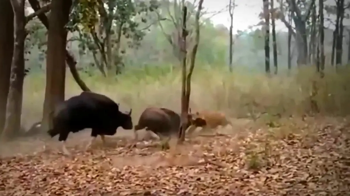 به گزارش رکنا، این ویدیو که جدال تمام عیار دو گاو نر را له تصویر می‌کشد، نشان می‌دهد که ببر در کمین گاو‌های نر نشسته است. در یک لحظه گاو بزرگتر حریف اش را بر زمین می‌کوبد و ببر از این فرصت برای شکار گاو شکست خورده بهره می‌برد.