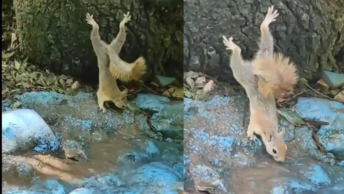 رکنا: لحظه جالب آب خوردن سنجاب شکار دوربین شد.