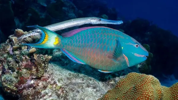 نتیجهی این آزمایش به گفتهی محققان این است که وقتی یک شیپورماهی پشت یک طوطیماهی کمین میکند، از چشم دخترماهی پنهان میشود.