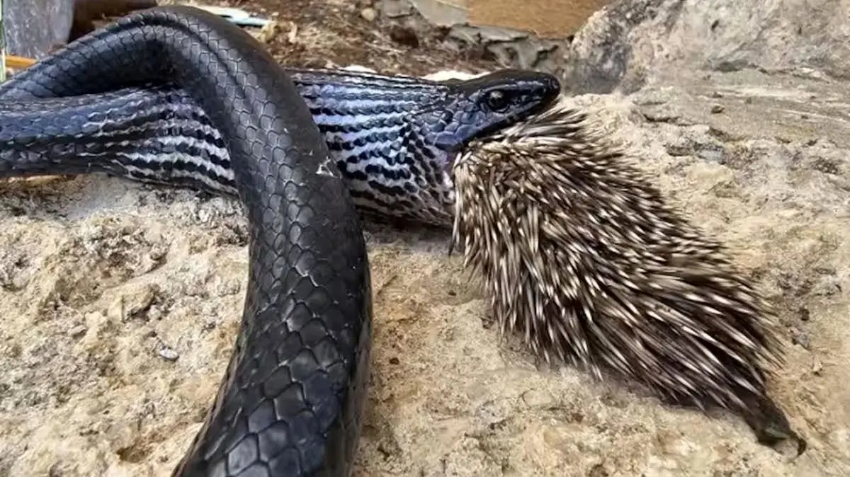 رکنا: شاید در ابتدا بلعیدن جوجهتیغی برای مار آسان به نظر برسد اما به گفتۀ یک بومشناس خزندگان: «جهت یک طرفه خارهای جوجهتیغی به مار اجازه نمیدهد آن را بیرون بیاندازد».