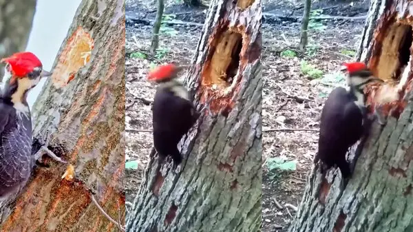 ببینید / سوراخ کردن درخت توسط دارکوب از نمای نزدیک + فیلم
